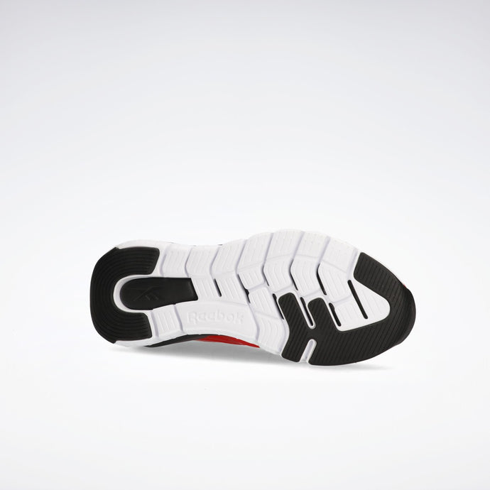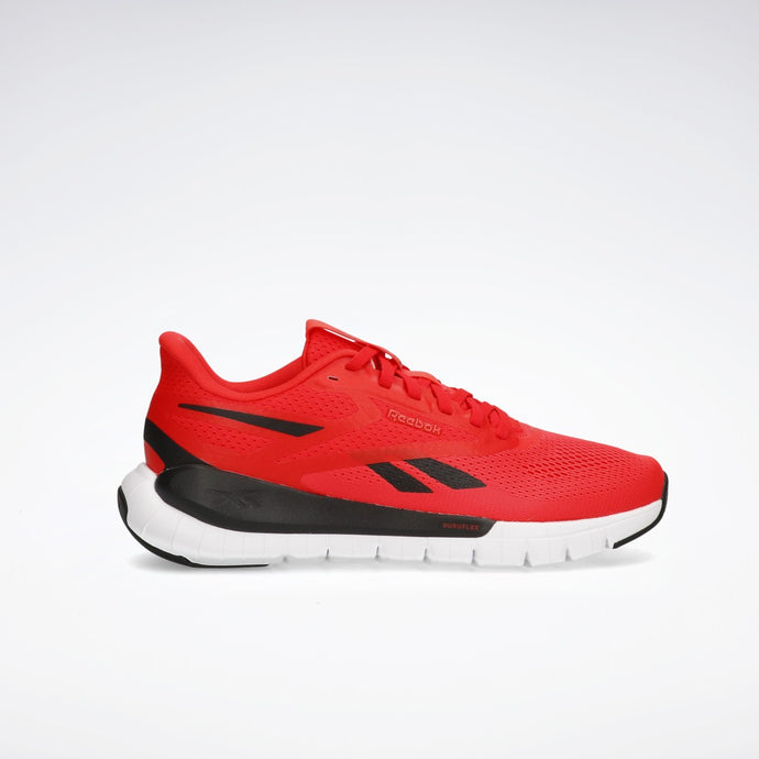 Estas zapatillas Reebok Flex Trainer combinan funcionalidad y estilo para acompañarte desde el calentamiento hasta el final de tu entrenamiento. La parte superior está confeccionada con malla transpirable de color negro y la suela está adornada con detalles de color rojo y azul. El clásico logo Vector añade el toque de estilo Reebok.