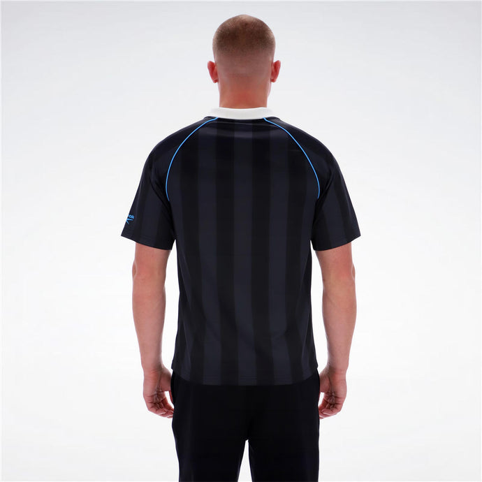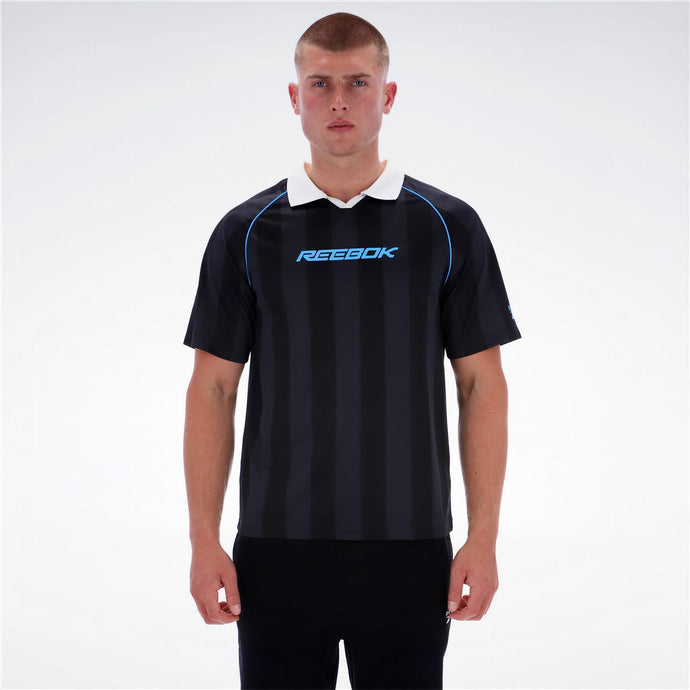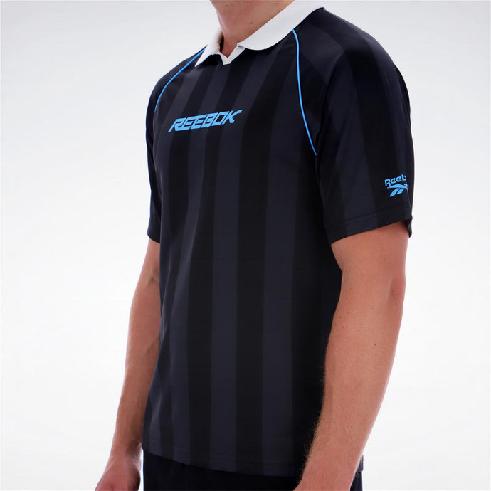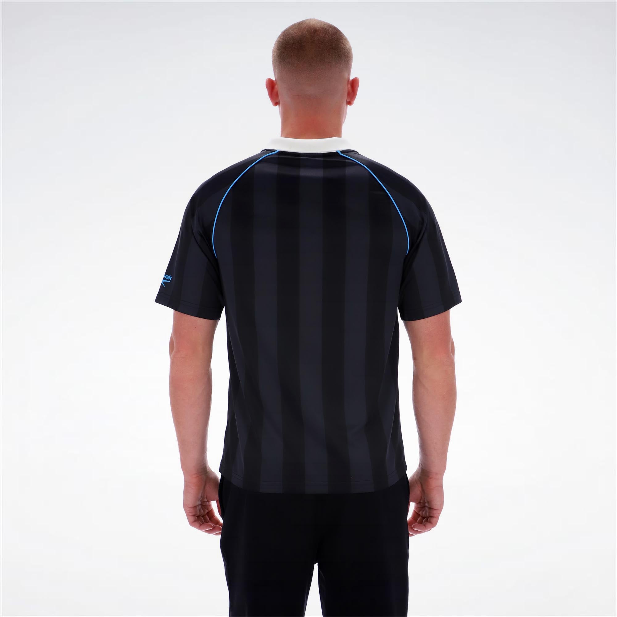 Remera con inspiración en retro fútbol, con estampas sublimadas en frente y espalda. Tiene un fit regular y cuello polo con vivos en color turquesa en el frente y en la espalda.