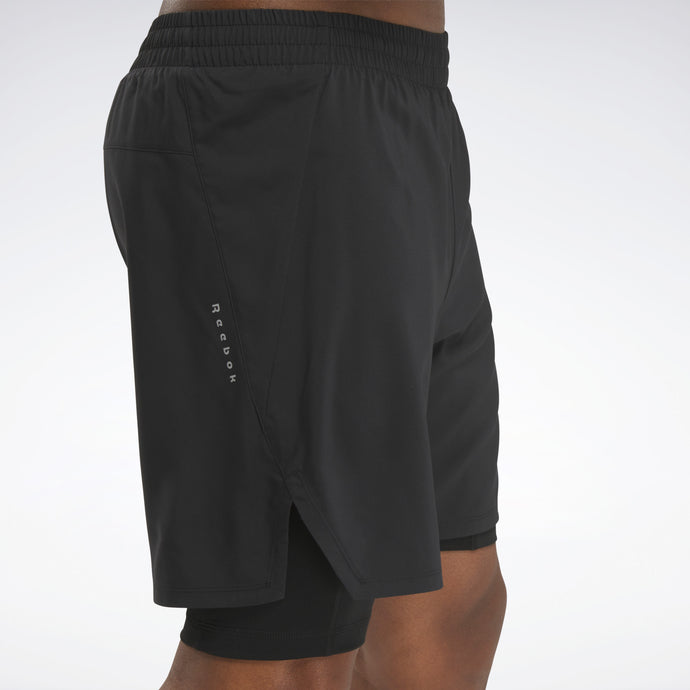 Short Reebok Running 2 en 1. Sea cual sea la distancia que tengas por delante. El tejido Speedwick te mantiene fresco y seco durante tus tempo runs y carreras de velocidad, mientras que los detalles de malla aumentan la ventilación. Los refuerzos interiores aportan sujeción adicional, y la cintura con cordón te permite un ajuste a medida. Cuenta con un pequeño bolsillo interior para guardar el móvil.