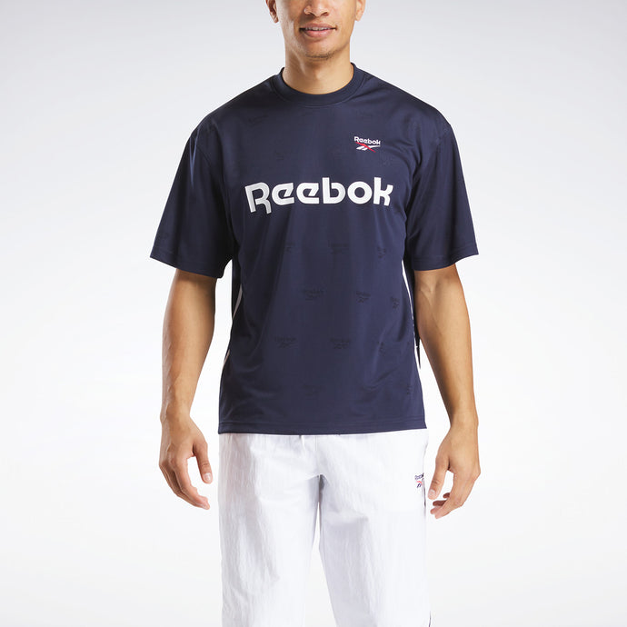 Luce Reebok al máximo con esta camiseta. La tela tiene una textura sutil que la hace destacar. Las rayas y los detalles bordados realzan tu look deportivo. Un Vector extragrande lo remata.