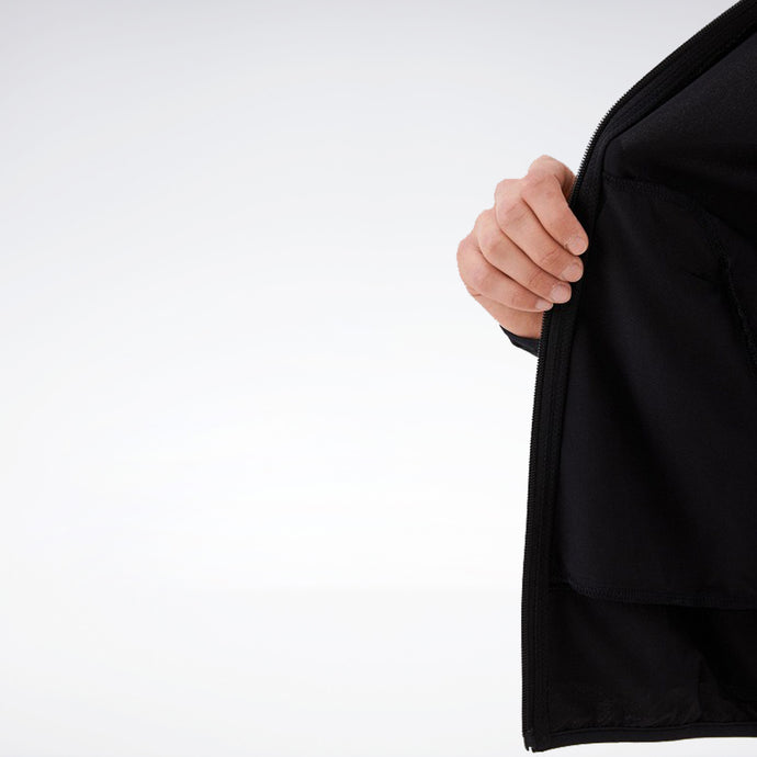 UNA CHAQUETA DE ENTRENAMIENTO PARA CLIMA FRÍO. El clima fresco es el clima perfecto para entrenar. Abróchate la cremallera con esta chaqueta de entrenamiento Reebok para hombre y ponte a trabajar. El corte entallado garantiza un movimiento sin distracciones y la perforación con diseño inspirado en Vector en la parte posterior está hecha de malla para ventilación. Los bolsillos laterales y traseros mantienen lo esencial cerca. Los detalles reflectantes brillan con poca luz.