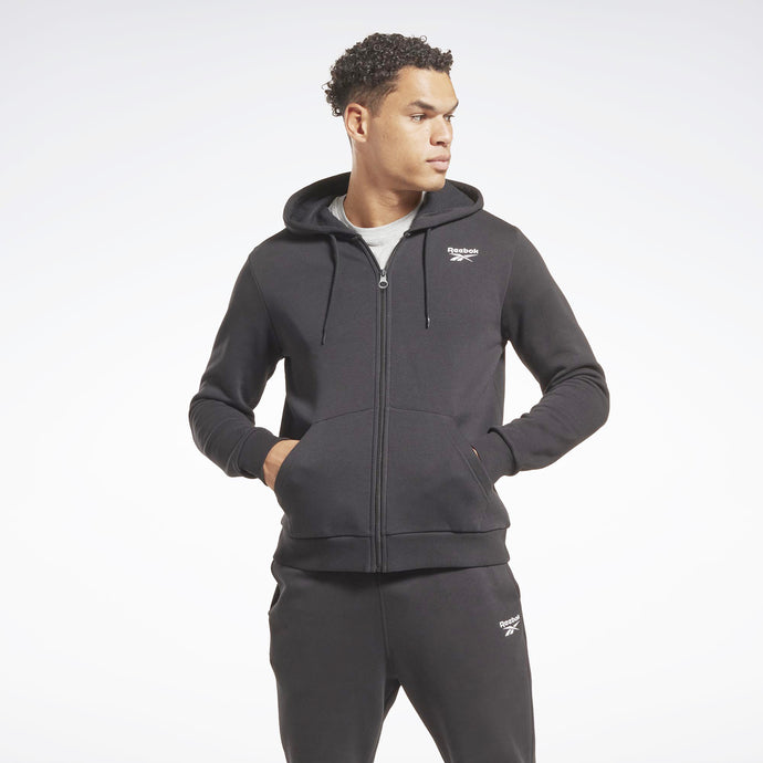 Estarás listo para lo que se te presente después de subirte la cremallera de esta sudadera con capucha Reebok para hombre. La suave mezcla de algodón brinda comodidad y calidez, y los puños y el dobladillo de canalé permanecen en su sitio mientras te mueves. Los bolsillos canguro mantienen tus manos calientes y sostienen tu teléfono cuando no tienes ganas de llevarlo.