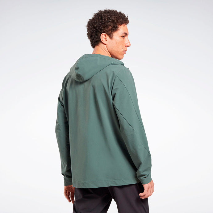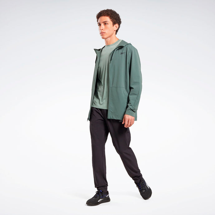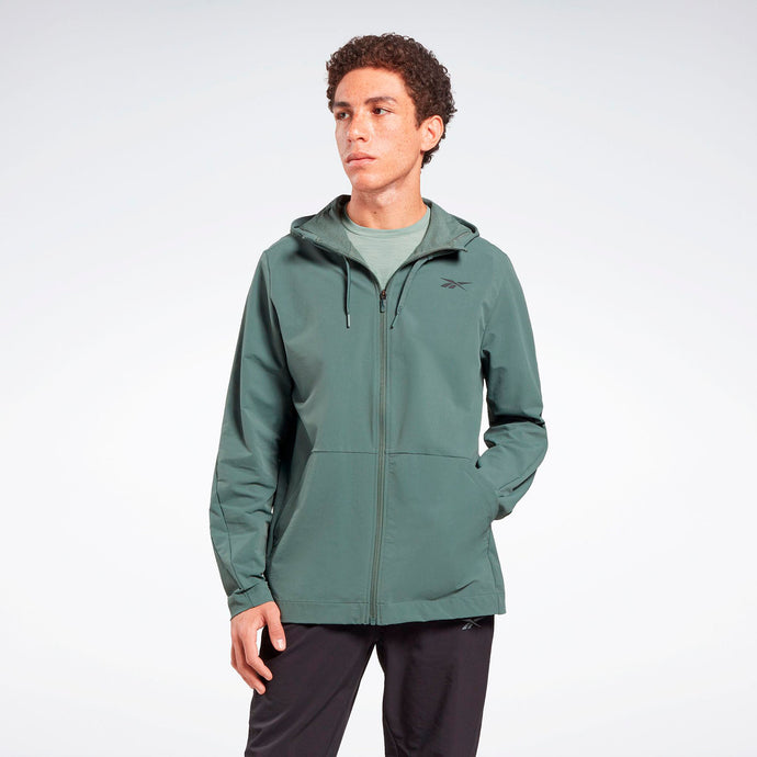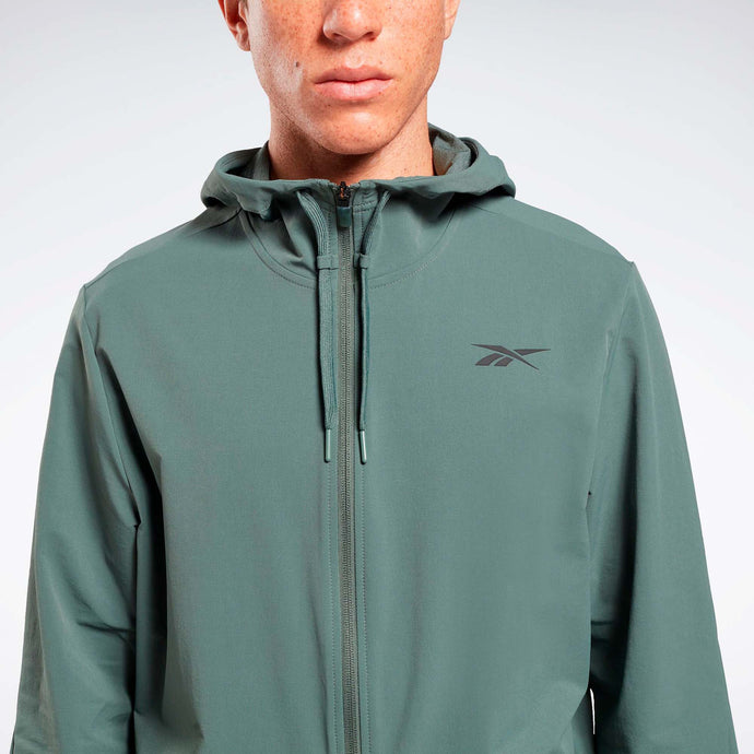 Abrígate para los entrenamientos en climas fríos con esta campera de entrenamiento Reebok para hombre hecha de tela absorbente de sudor. Y no te preocupes si llueve mientras estás afuera, el revestimiento duradero repelerá al agua. Calienta tus manos entre repeticiones en los bolsillos laterales.