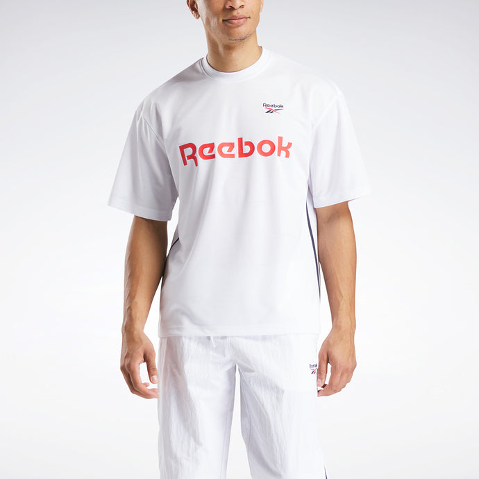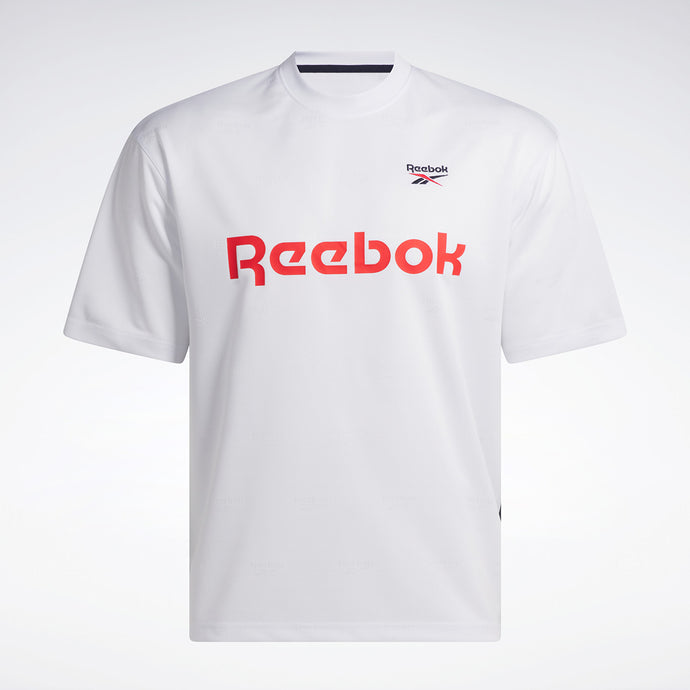 Demuestra que eres del equipo Reebok con esta camiseta. El logotipo de Reebok aparece en el tejido jacquard para una textura extra. El logotipo de Reebok de gran tamaño tiene un aspecto de patrocinador. Un cuadro cruzado bordado le da el toque final.