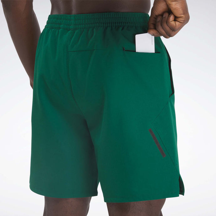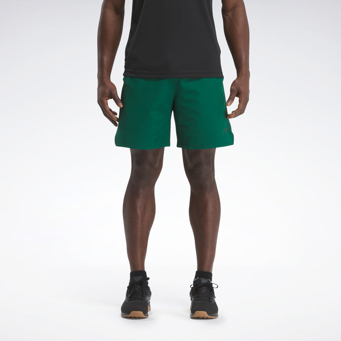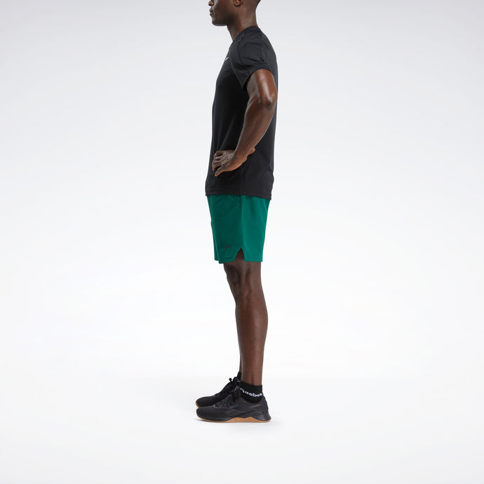 SHORTS DE ENTRENAMIENTO DURADEROS QUE FORMAN PARTE DE LA COLECCIÓN [REE]CYCLED DE REEBOK. Desde el soporte para sentadillas hasta la bicicleta estática, estos pantalones cortos de entrenamiento Reebok para hombre están hechos para un movimiento sin restricciones, con un corte delgado que no se interpondrá en tu camino. La tela elástica en cuatro direcciones te permite lanzarte y estirarte libremente. RBK-DRY elimina el sudor de la piel para mantenerte seco.