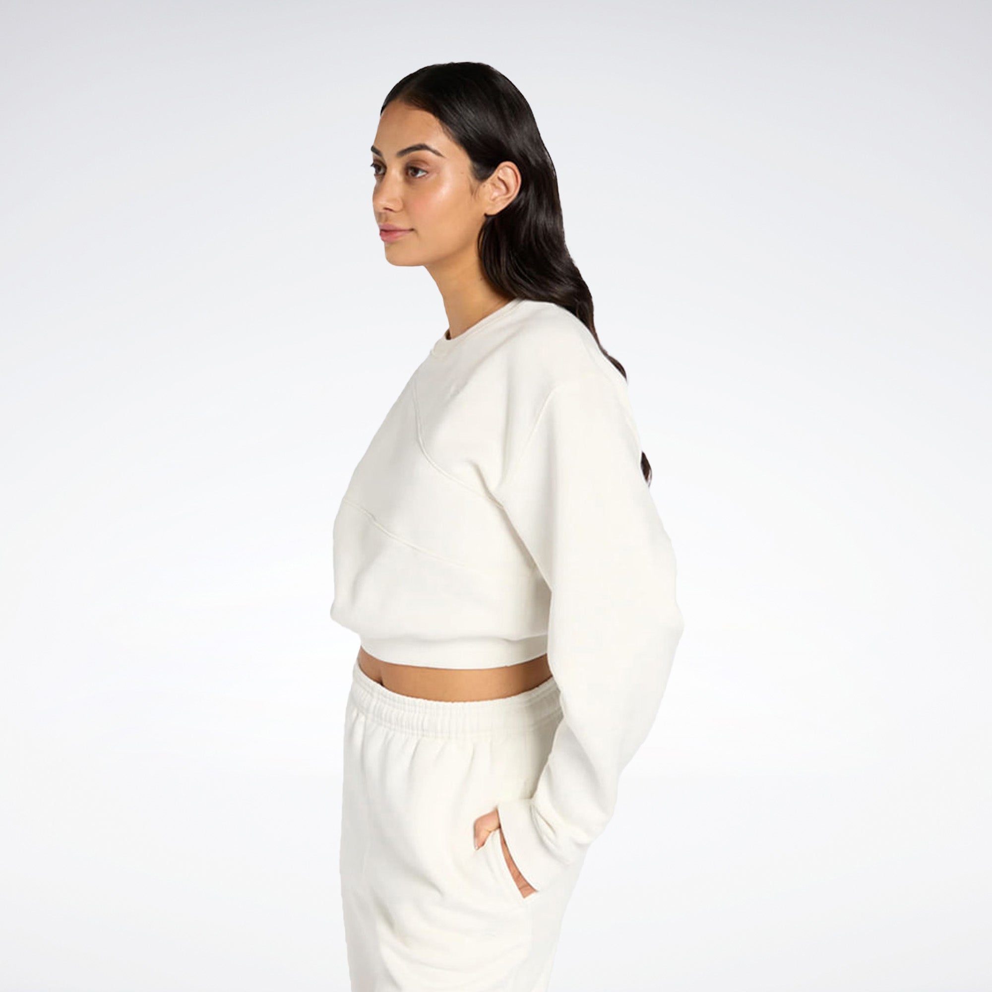 Disfruta de la comodidad con una dosis extra de Reebok cuando uses este buzo de cuello redondo para mujer. Amplia y corta, es el complemento perfecto o puedes usarlo solo. Las líneas reinventan un estilo Vector de archivo. El polar suave y cálido es acogedor para cualquier día.