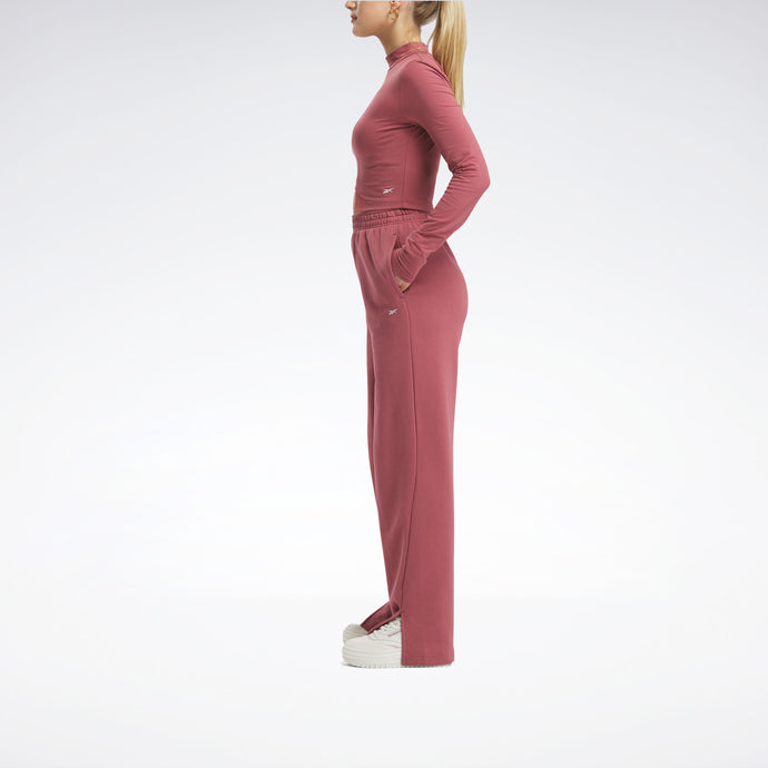 Ese toque de lujo es de lo que se trata. Qué bueno que tienes este par de pantalones de tiro alto para mujer. Comience con un Reebok Vector bordado. Pase a la felpa francesa suave y lujosa. Y remata todo con unas piernas anchas y rectas, fluidas y favorecedoras.