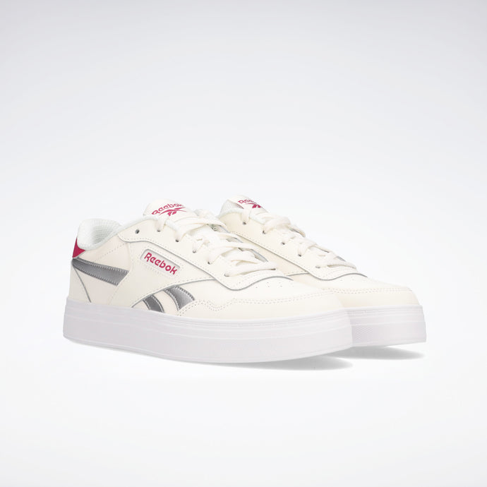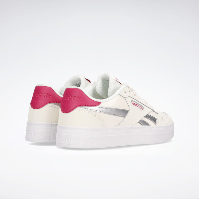 Todos los estilos de Reebok Court que te encantan. Estas zapatillas para mujer combinan los icónicos Club C 85 y Club C Revenge para dar un nuevo impulso a la cancha. Una entresuela de plataforma y toques de color realzan tu look