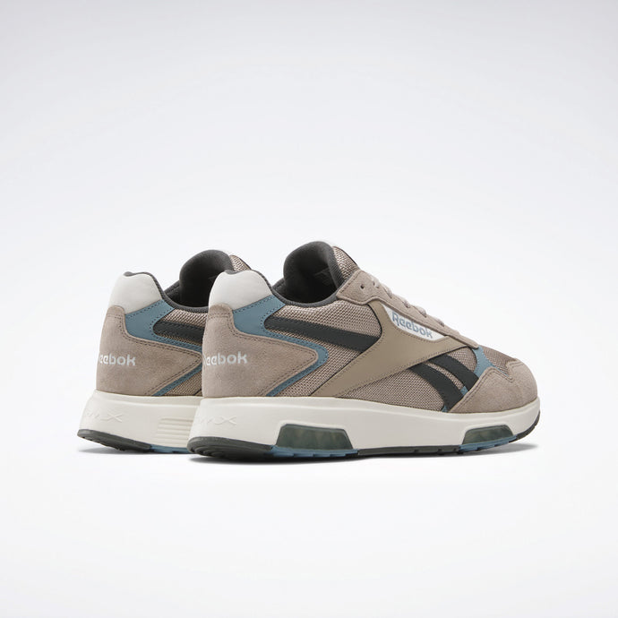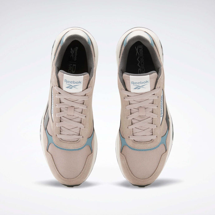 Las zapatillas Glide están adornadas con detalles clásicos de Reebok, como las rayas laterales y los logos retro. También cuentan con la característica suela ondulada actualizada con tecnología DMX, que mueve el aire entre la parte delantera y la posterior para amortiguar cada paso.