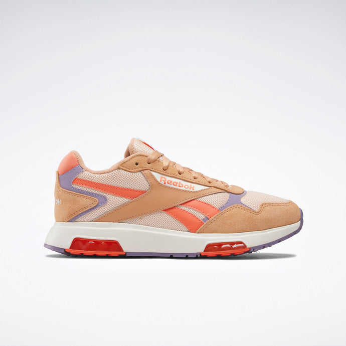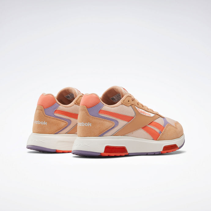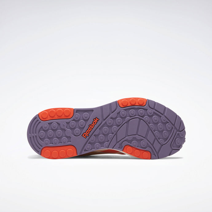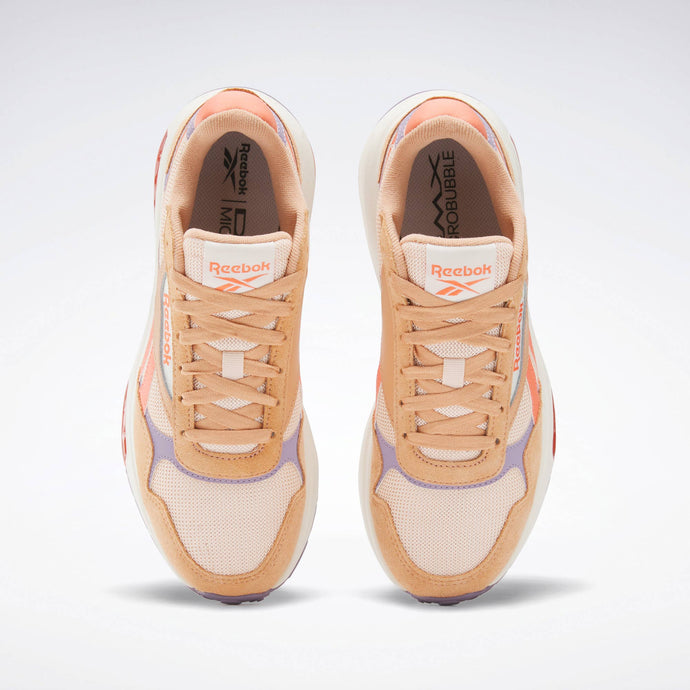 Las zapatillas Glide están adornadas con detalles clásicos de Reebok, como las rayas laterales y los logos retro. También cuentan con la característica suela ondulada actualizada con tecnología DMX, que mueve el aire entre la parte delantera y la posterior para amortiguar cada paso.