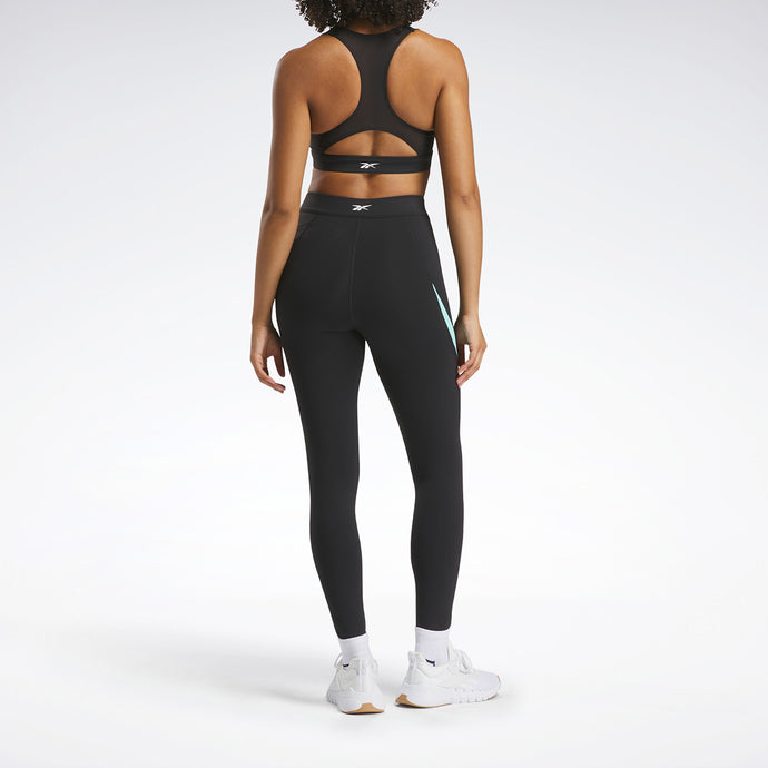 Dale un impulso a tu entrenamiento con estas calzas Reebok para mujer. La tela Nylux tiene un tacto suave de algodón y te brinda libertad de movimiento para zancadas y estiramientos. La cintura alta te envuelve para un ajuste favorecedor, y un bolsillo lateral te permite tener el teléfono a mano.