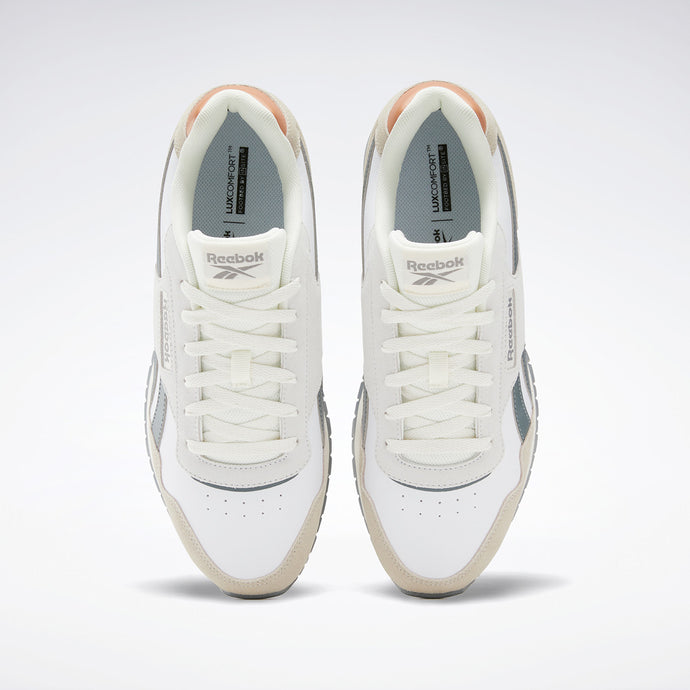 Las Zapatillas Glide tienen una serie de características clásicas de Reebok: rayas en paneles, logotipo en forma de ventana y puntera perforada, por nombrar solo algunas. Pero la suela exterior ondulada y de líneas limpias es lo que hace que estas zapatillas sean únicas.