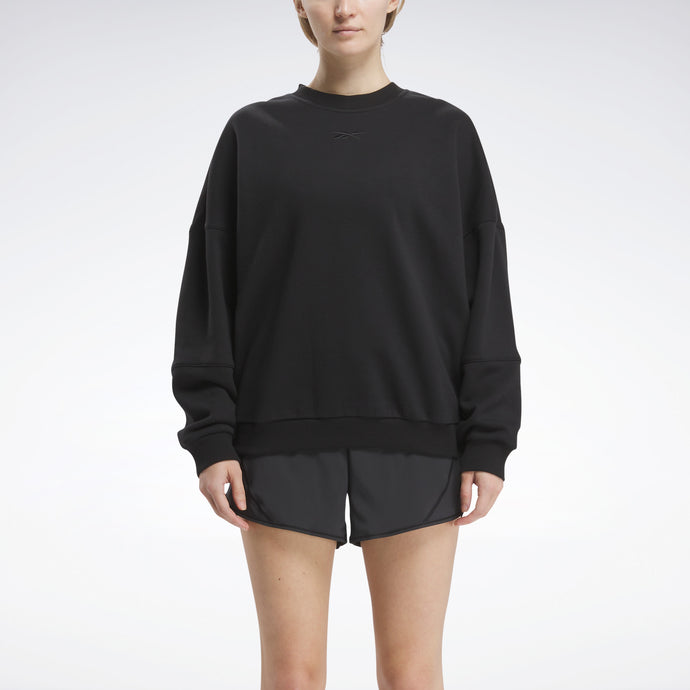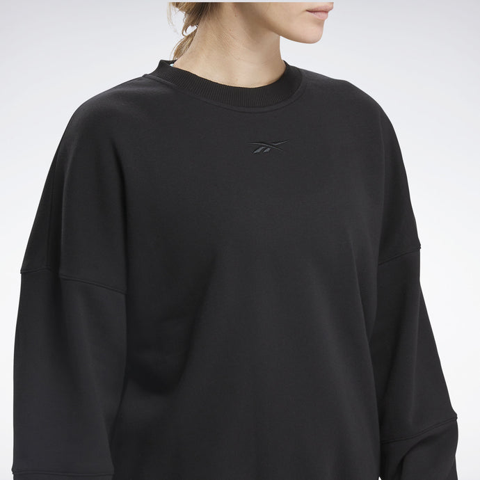 Ponte este buzo de cuello redondo de gran tamaño Reebok Lux para mujer y lleva la relajación profunda contigo a donde quiera que vayas. Totalmente informal y absolutamente cómoda, la tela de vellón y un ajuste sin restricciones le dan una sensación acogedora. Los hombros caídos muestran un estilo relajado.