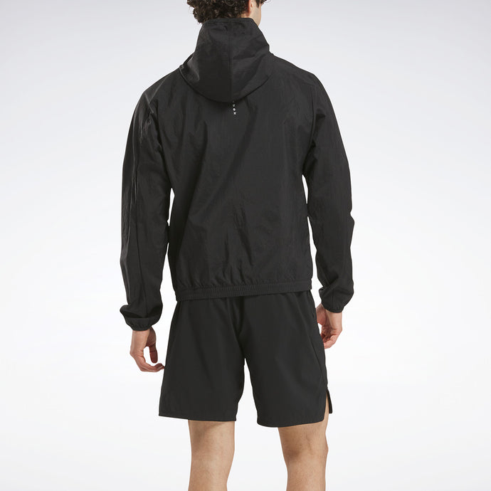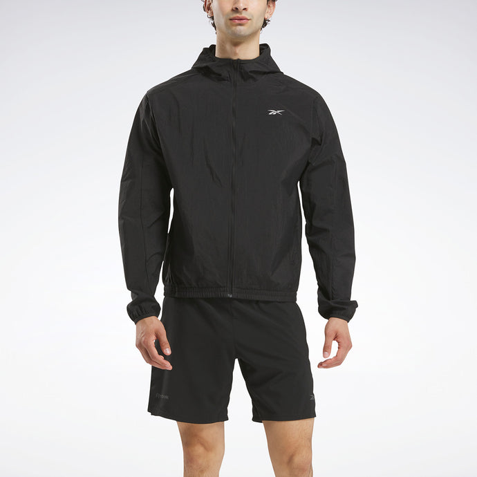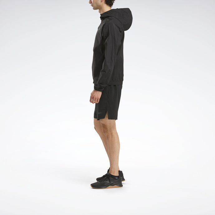 Corre como el viento con la chaqueta Reebok Running Woven Wind, es liviana, repelente al agua y cuenta con capucha fija que te protege contra los elementos. Los logos reflectivos en pecho y espalda, entretanto, son aumento de visibilidad para correr al aire libre y en las noches. Destacan, además, los tejidos reciclados, los ribetes elásticos y los bolsillos laterales. El cierre frontal con cremallera es su sello de versatilidad.