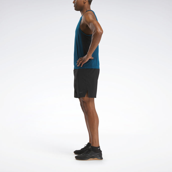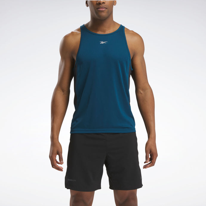 Los días soleados y las cuestas empinadas son perfectas para llevar esta musculosa REEBOK para hombre. El tejido RBK-DRY te mantiene seco y concentrado para no perder el ritmo. El panel de malla en la parte posterior facilita la circulación del aire.