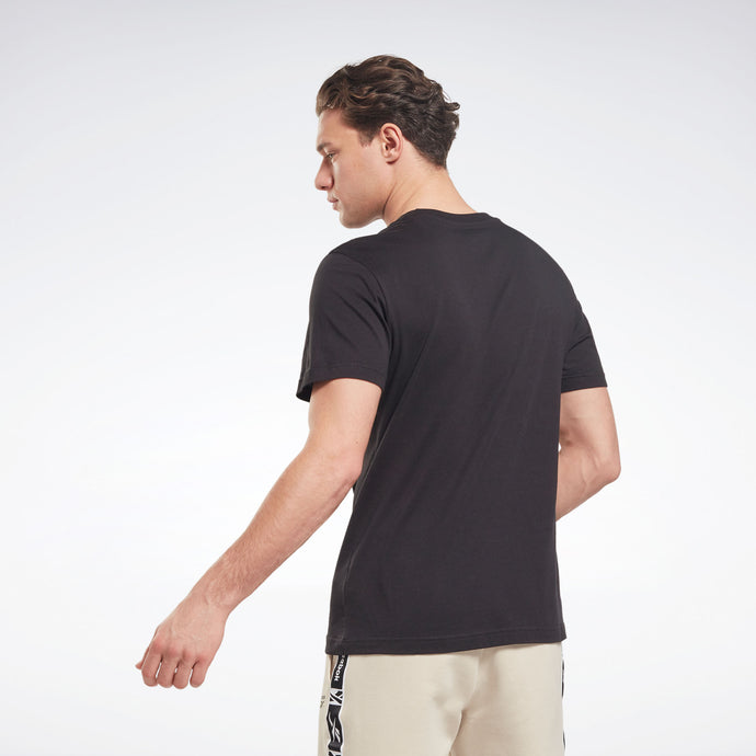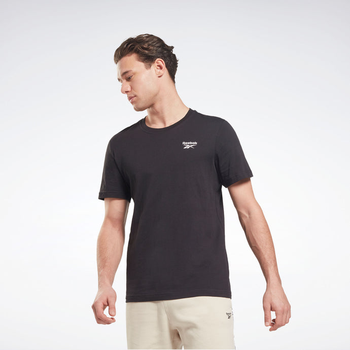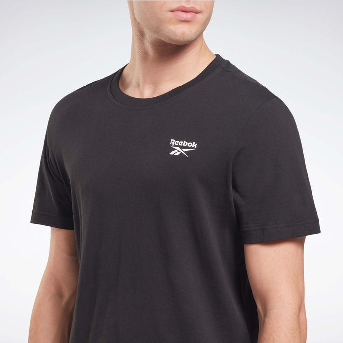 REMERA REEBOK IDENTITY SMALL LOGO. Esta remera Reebok para hombre luce un gran logotipo Vector que pone tu orgullo al frente. El jersey de algodón suave ofrece todo lo que conoces y amas de tus camisetas favoritas.