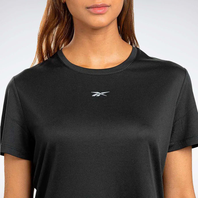 Esta camiseta de running Reebok para mujer combina el estilo tradicional con la tecnología moderna. La tela Speedwick absorbe el sudor para mantenerte fresco mientras viajas y los detalles reflectantes brillan cuando la luz se desvanece.