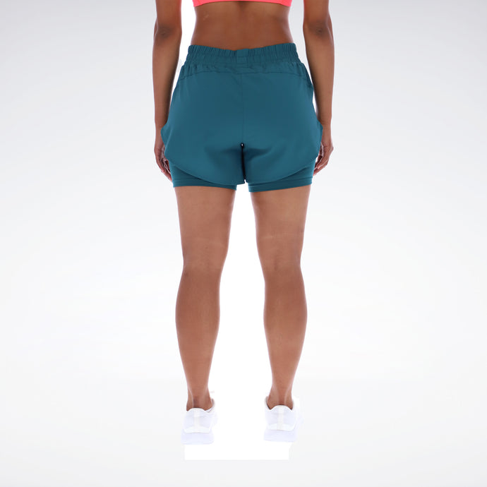 Short 2 en 1 de running con cintura ancha elástica y aberturas curvadas en los laterales para mayor movilidad. la calza interna es de interlock de elastano, suave al tacto y con mucha elasticidad, también posee un bolsillo pequeño interno.