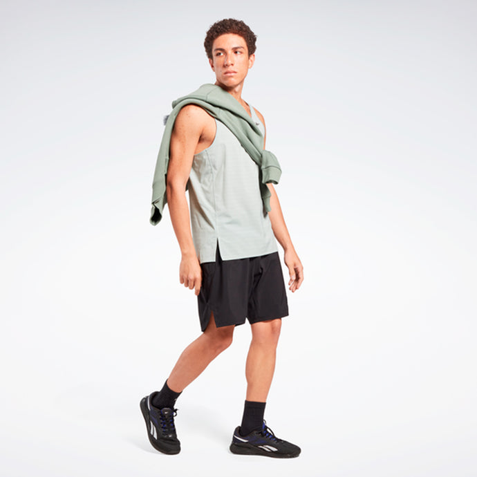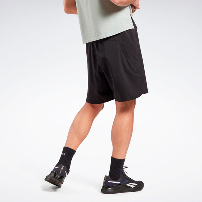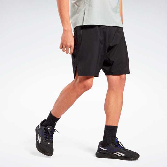 PANTALONES CORTOS DE ALTO RENDIMIENTO QUE FORMAN PARTE DE LA COLECCIÓN [REE]CYCLED DE REEBOK. No importa la distancia, estos pantalones cortos Reebok para hombre te mantienen fresco y seco gracias al Speedwick que absorbe el sudor. La cintura elástica brinda una sensación cómoda y fija, y un bolsillo con cierre guarda la llave o el gel para facilitar el acceso.