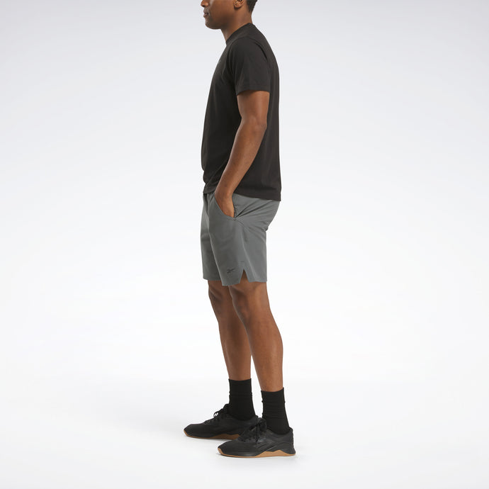Desde el soporte para sentadillas hasta la bicicleta estática, estos pantalones cortos de entrenamiento Reebok para hombre están hechos para un movimiento sin restricciones, con un corte delgado que no se interpondrá en tu camino. La tela elástica en cuatro direcciones te permite lanzarte y estirarte libremente. RBK-DRY elimina el sudor de la piel para mantenerte seco.
