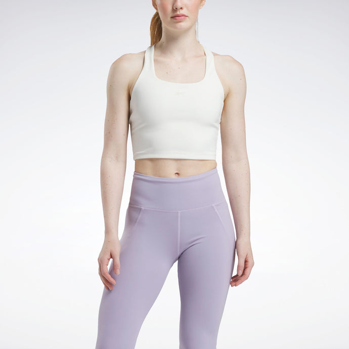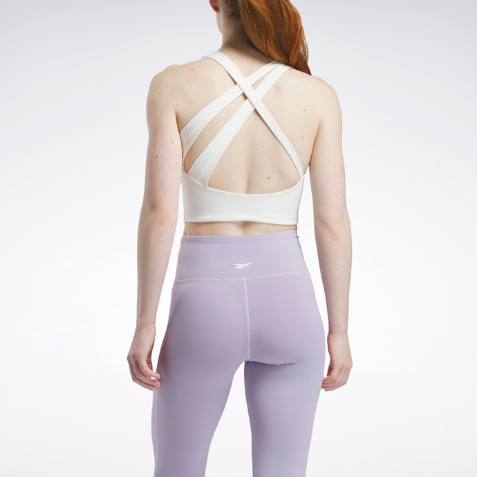 Cuando te presentas a hacer ejercicio, te presentas para ti misma. Este Top Reebok para mujer es suave, tiene una silueta corta y está forrada en la parte delantera y trasera para brindar cobertura y soporte. Una espalda con tiras inspirada en Vector le da un toque deportivo y elegante.