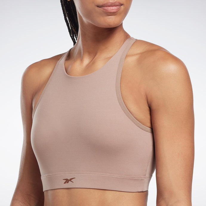 Este sujetador deportivo Reebok tiene un escote alto y una longitud más larga para mayor cobertura. La tela melocotón se siente súper suave contra la piel y las almohadillas removibles te permiten personalizar la forma y el ajuste.