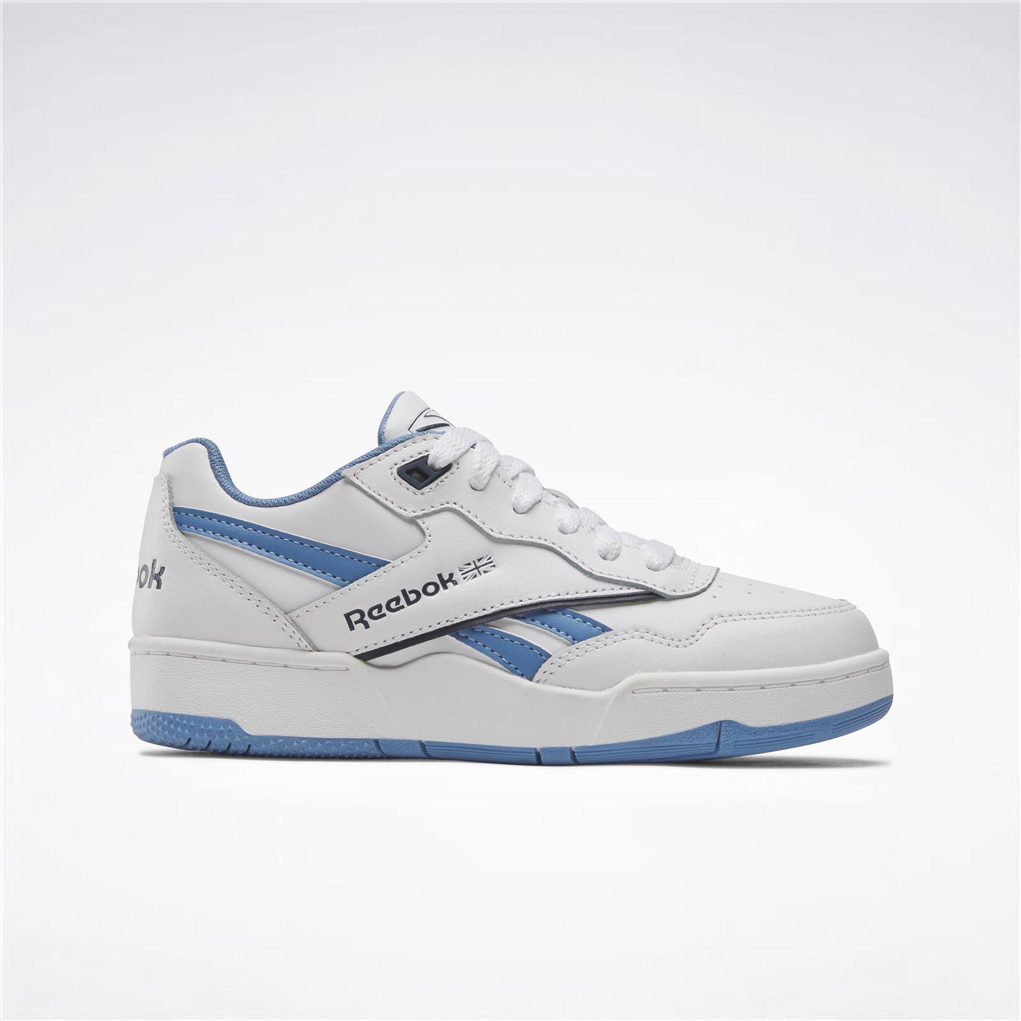 Lleva el estilo de la cancha a tu rutina diaria. El diseño de zapatillas inspiradas en el baloncesto cuenta con una parte superior totalmente blanca y el logo de Reebok grabado en el lateral. La suela de goma les da un aspecto clásico que puedes combinar con vaqueros, pantalones cortos o casi cualquier prenda de tu armario.